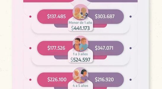 Para un niño de 1 a 3 años, el costo de la canasta fue de $524.597 en octubre. Estuvo compuesta por $177.526 de bienes y servicios y $347.071 de cuidados.
