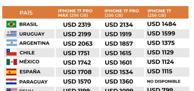 Por último, en España —otro país frecuentado por argentinos— el iPhone 17 Pro Max se vende a 1.469 euros (USD 1.708,86), el iPhone 17 Pro a 1.319 euros (USD 1.534,37) y el iPhone 17 a 959 euros (USD 1.115,59).