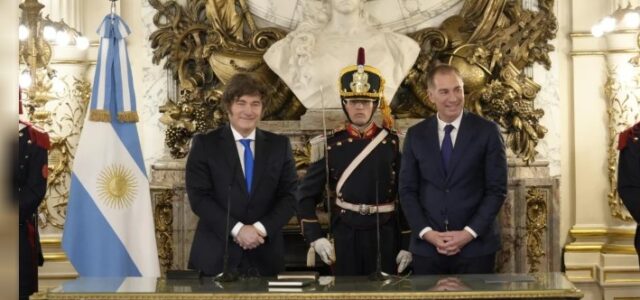 «Vamos por las reformas que el país necesita, que los argentinos necesitan. Vengo a trabajar para obtener las reformas que busca el Presidente. Vengo a cumplir una tarea que el Presidente me ha encomendado y trabajaré para eso que es avanzar con las reformas estructurales», le dijo a la prensa acreditada en la Rosada minutos después de tomar posesión del cargo de manera formal.